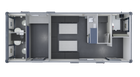 The unit includes a canteen, office, drying area, safety area, two toilets, and a generator room. Microgrid technology provides power to this cabin by capturing, storing, and supplying solar energy. A diesel/HVO battery charger is on hand for periods of high load or if the built-in battery bank is empty.